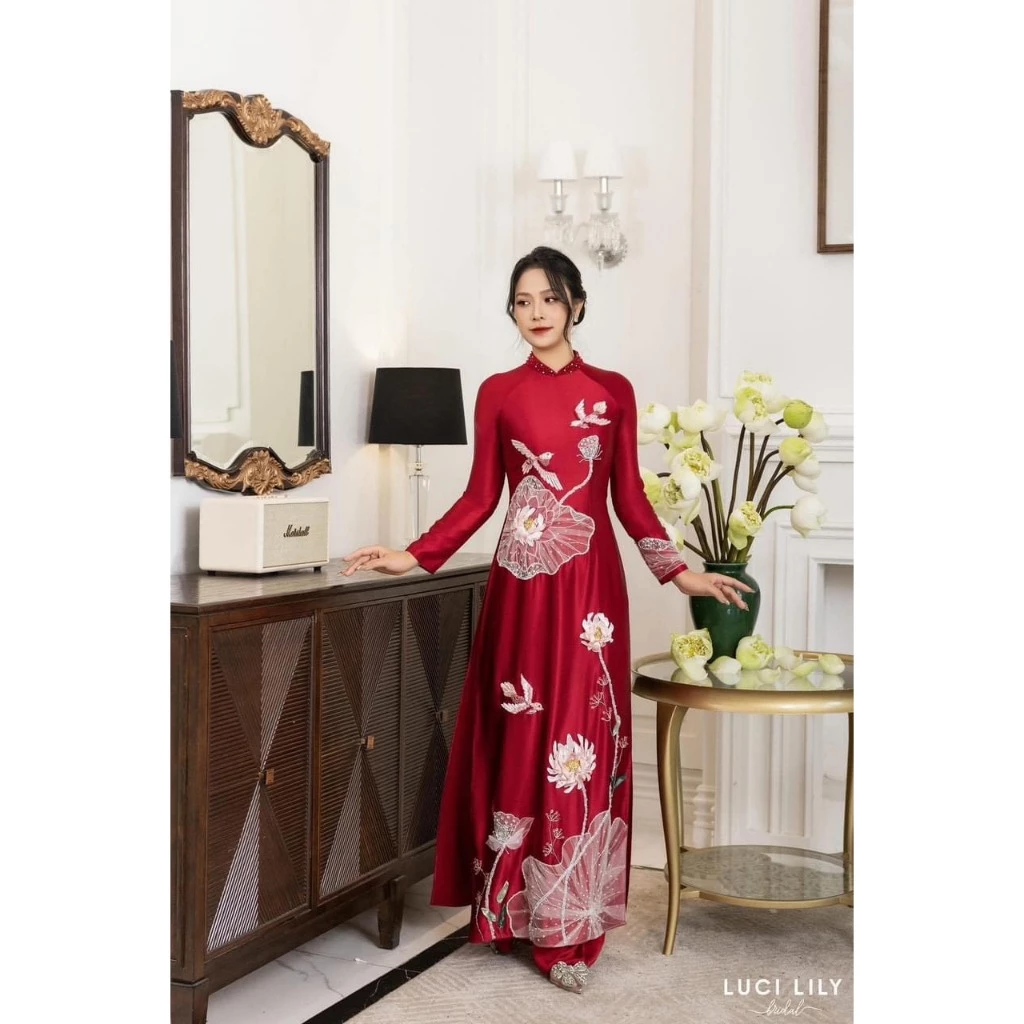 Áo dài mẹ cô dâu không chỉ là trang phục mà còn là biểu tượng của tình cảm gia đình và niềm tự hào khi con gái bước vào cuộc sống mới. Những mẫu áo dài cho mẹ cô dâu thường được thiết kế tinh tế với họa tiết hoa văn thêu tay, kết cườm hoặc đính đá sang trọng. Màu sắc như hồng phấn, tím nhạt, hoặc xanh dương nhẹ nhàng được nhiều mẹ cô dâu lựa chọn để tôn lên vẻ dịu dàng, thanh lịch.