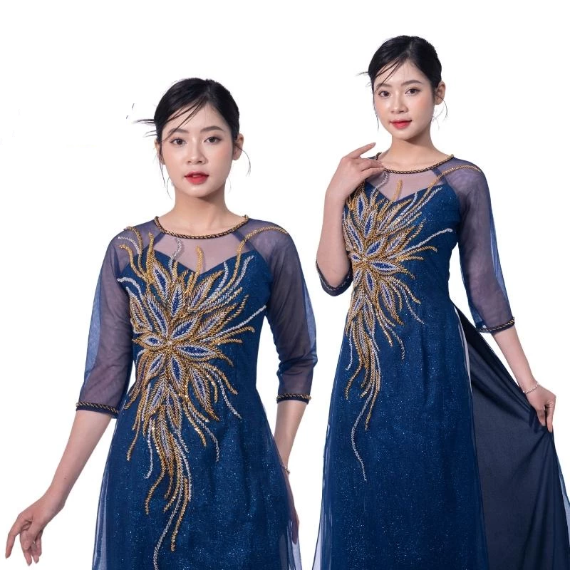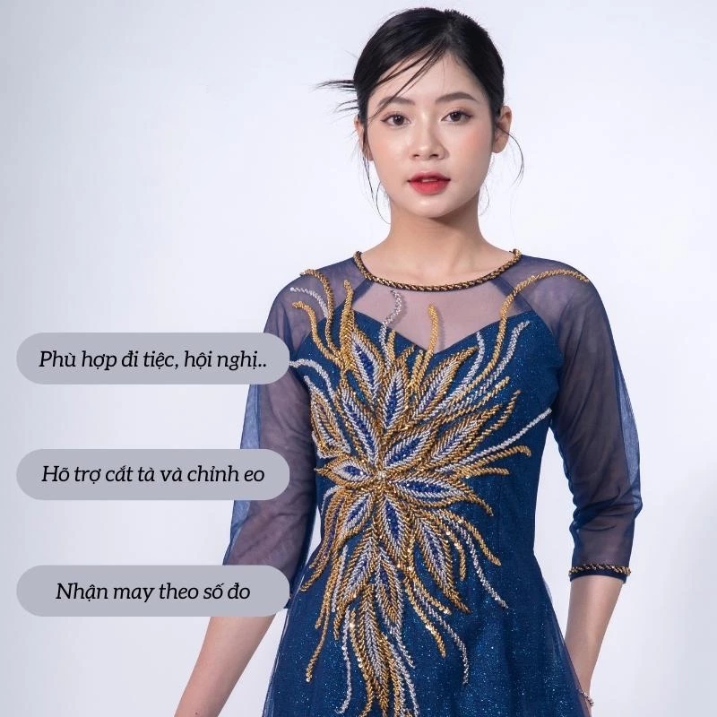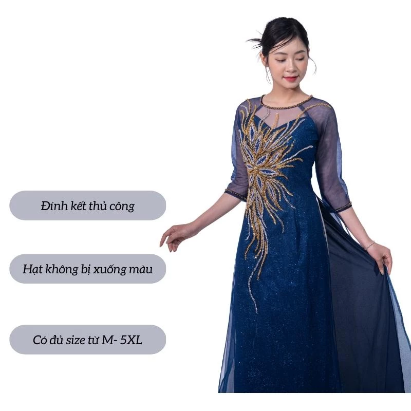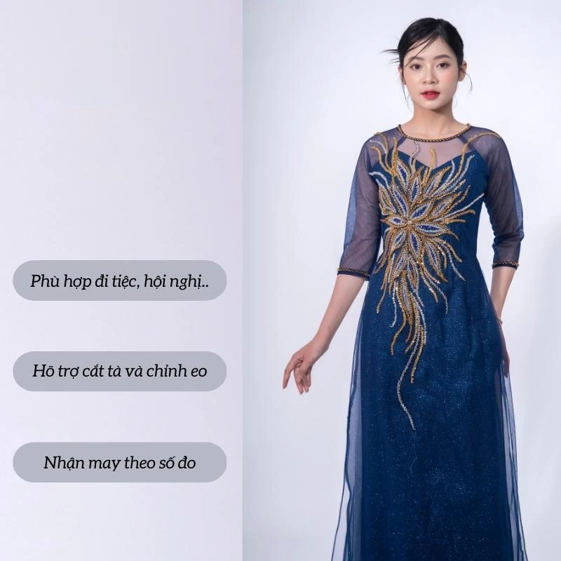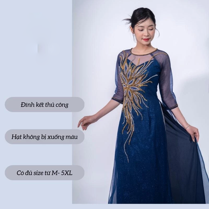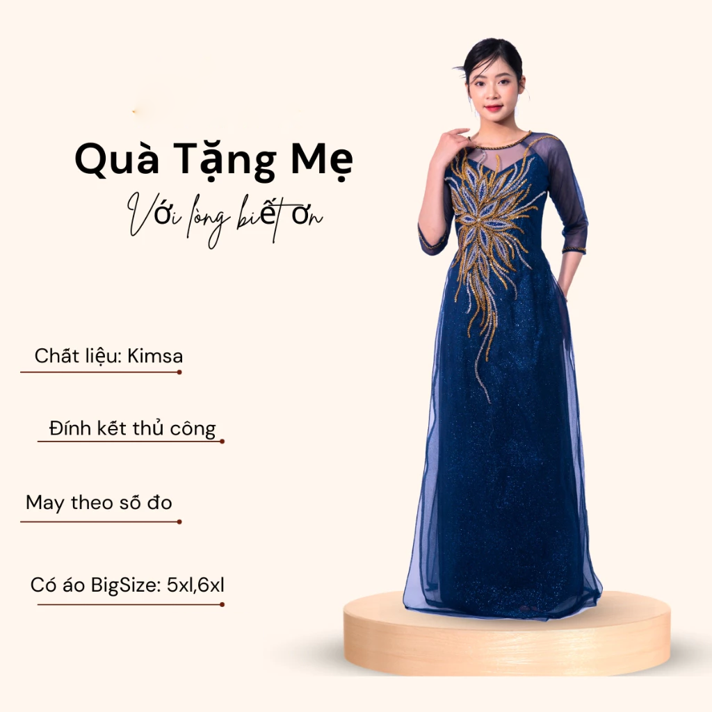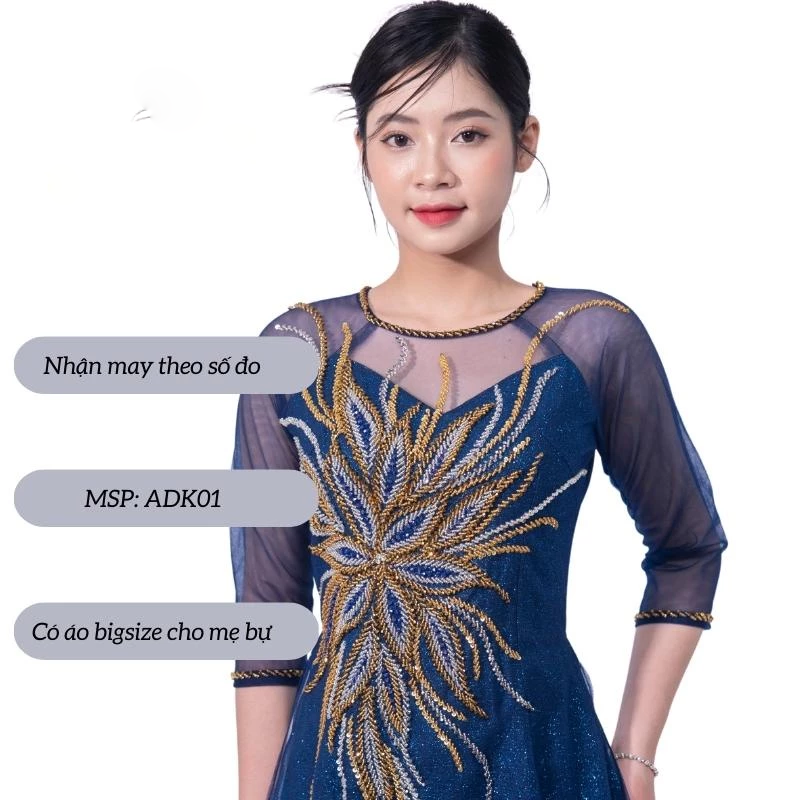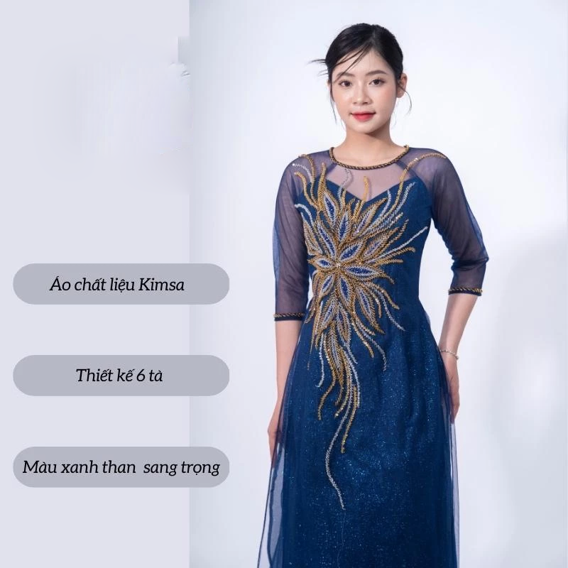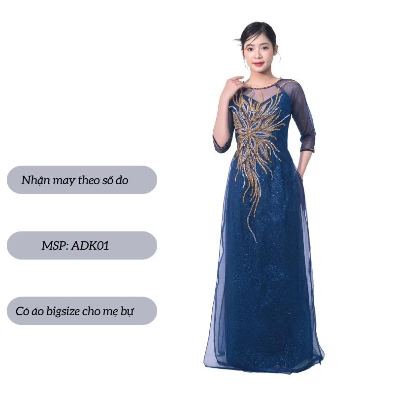 👰 Tên sản phẩm: Áo dài bà sui cao cấp – Áo dài kimsa màu xanh coban dành cho các mẹ ngồi sui ADK02