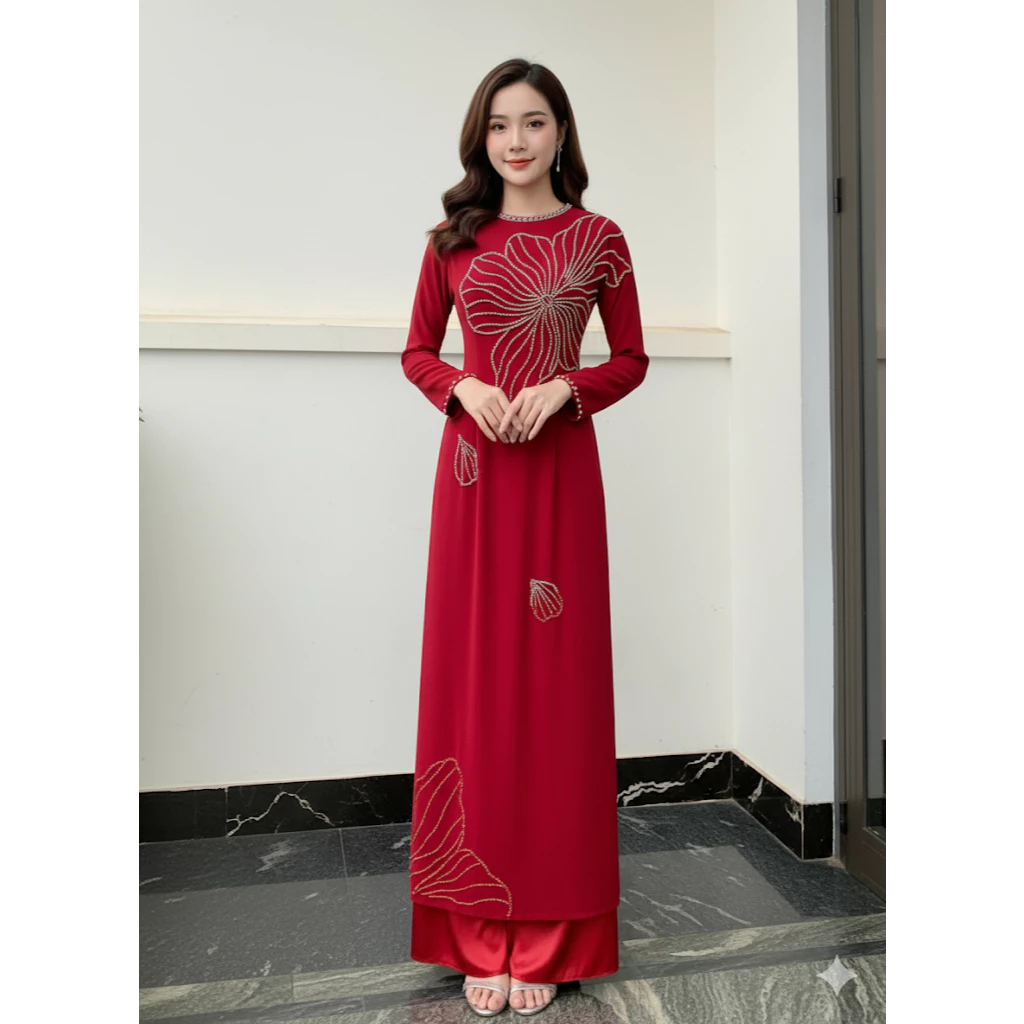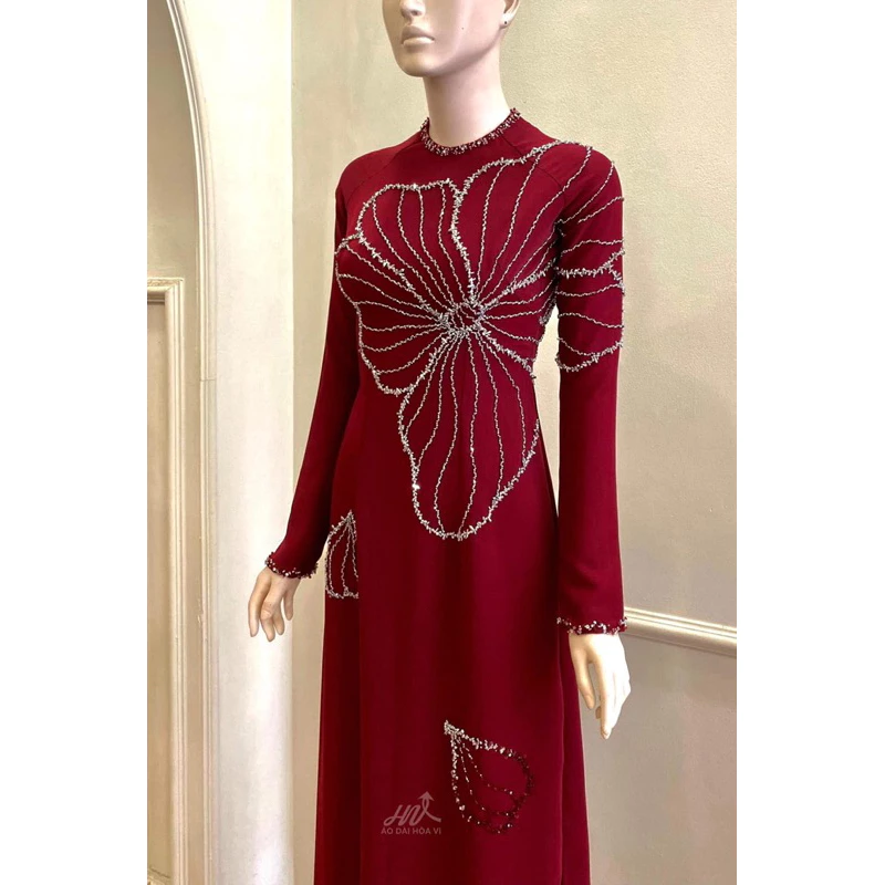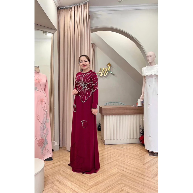 Áo dài ngồi sui màu đỏ đô đậm sang trọng cho các mẹ mặc cưới con ADM31