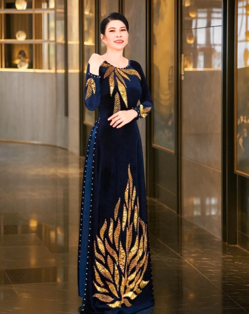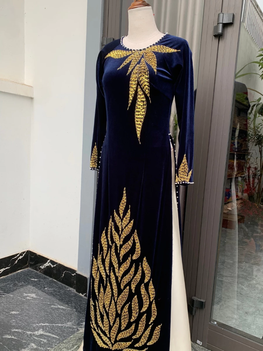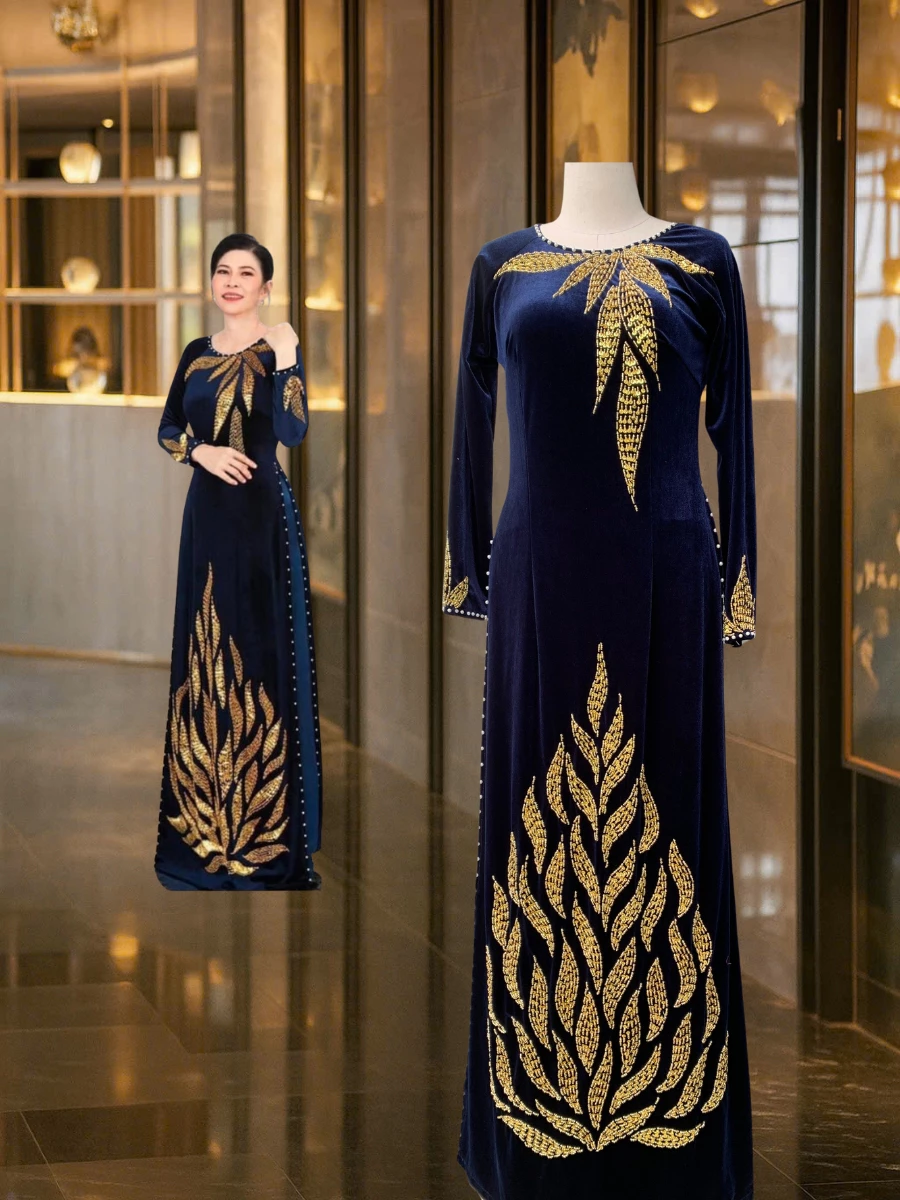 Áo dài nhung cao cấp ADM59 – Lựa chọn hoàn hảo dành cho mẹ cô dâu, mẹ chú rể hoặc các quý cô yêu thích sự sang trọng và đẳng cấp. Chất liệu nhung mềm mại, kết hợp họa tiết đính kết thủ công tinh xảo, tạo nên vẻ đẹp quý phái, tôn dáng và nổi bật trong mọi sự kiện.