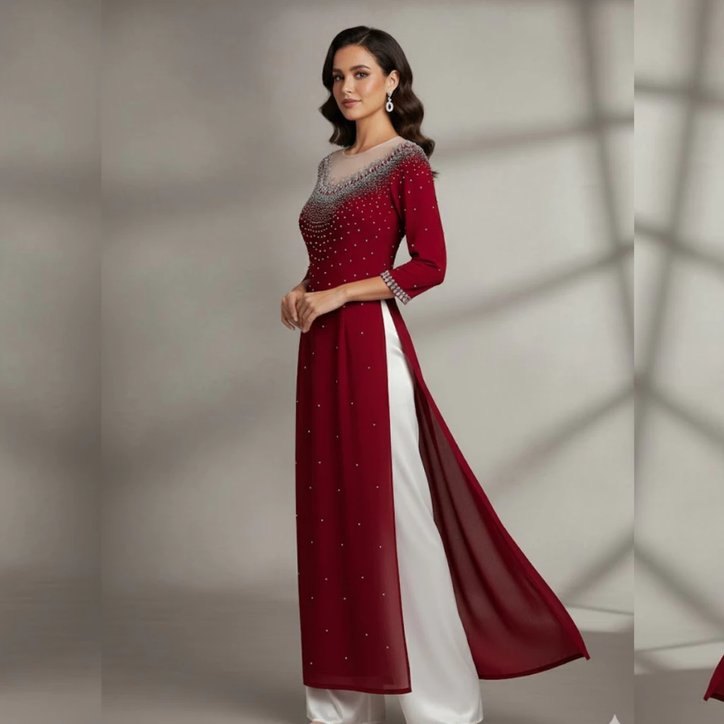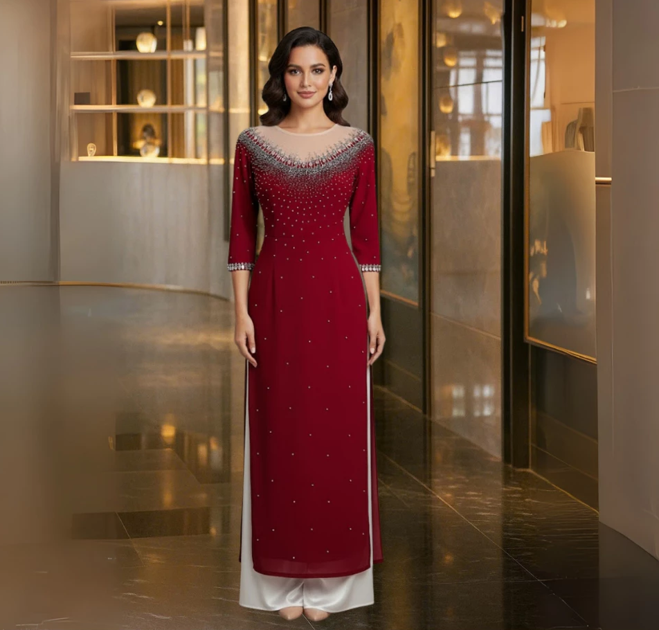 Áo dài được may và kết tỉ mỉ, kỹ càng.