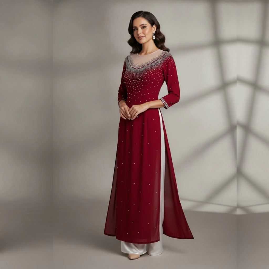 Tên sản phẩm: Áo dài sui gia cho mẹ ngồi tiệc ngày cưới con ADM58