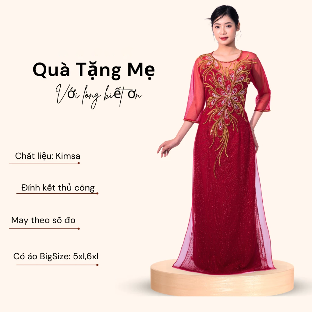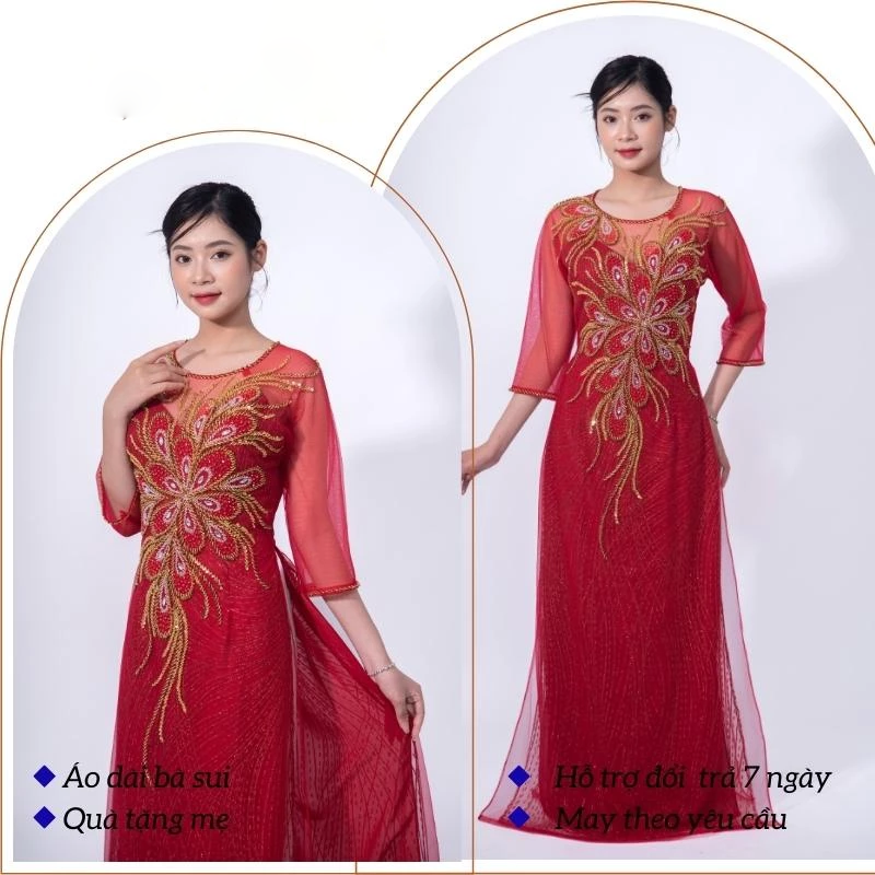 Áo dài bà sui cao cấp được thiết kế với màu đỏ tươi giúp các mẹ không còn có cảm giác mình ở tuổi trung niên mà như thời còn trẻ. Ở đây Mẹ không chỉ là mẹ đơn thuần mà trong đó còn chứa chan đầy tình cảm, sự tự hào, và lòng biết ơn.