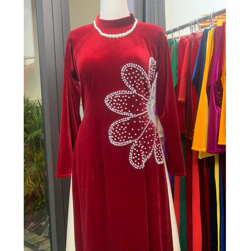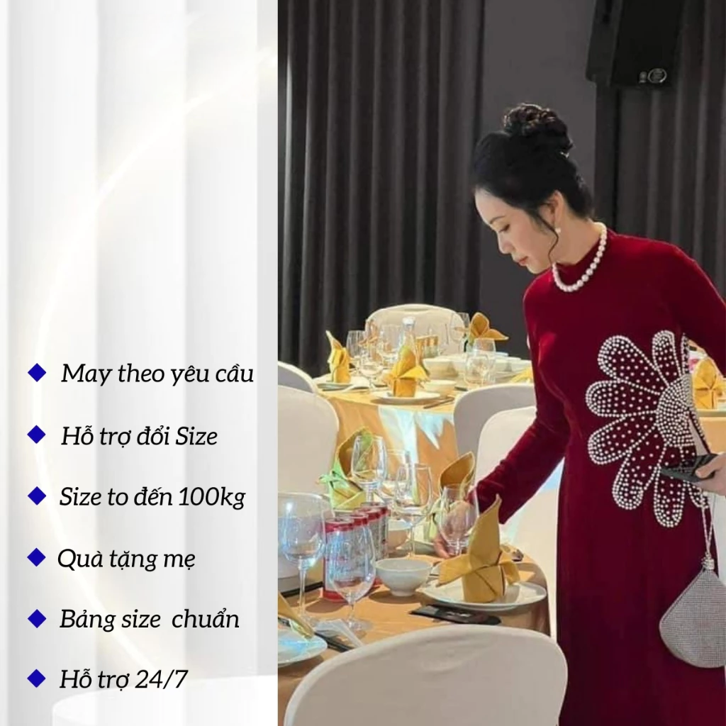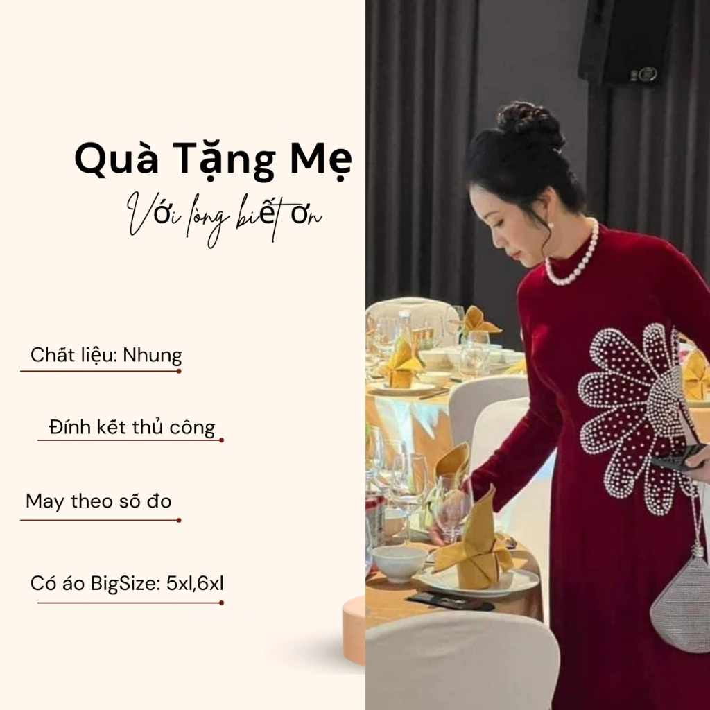 Tên sản phẩm: Áo dài trung niên dành cho các mẹ ngồi sui chất liệu nhung cao cấp ADM10