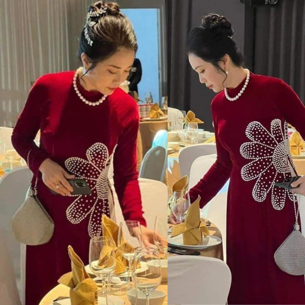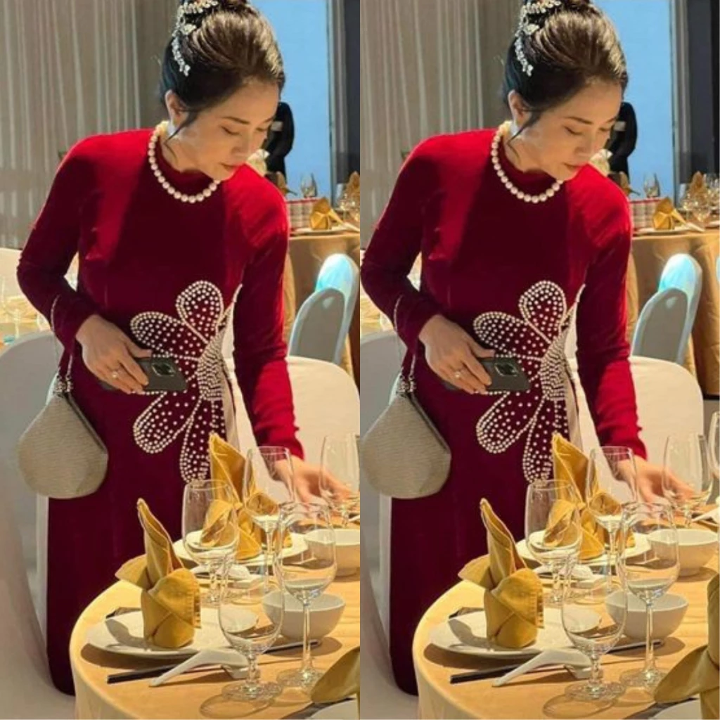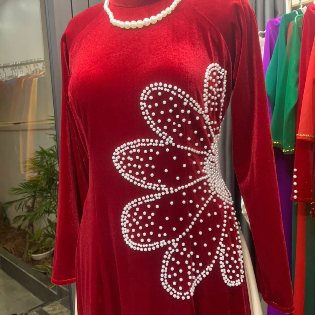 Tên sản phẩm: Áo dài trung niên dành cho các mẹ ngồi sui chất liệu nhung cao cấp ADM10
