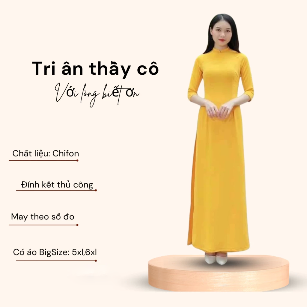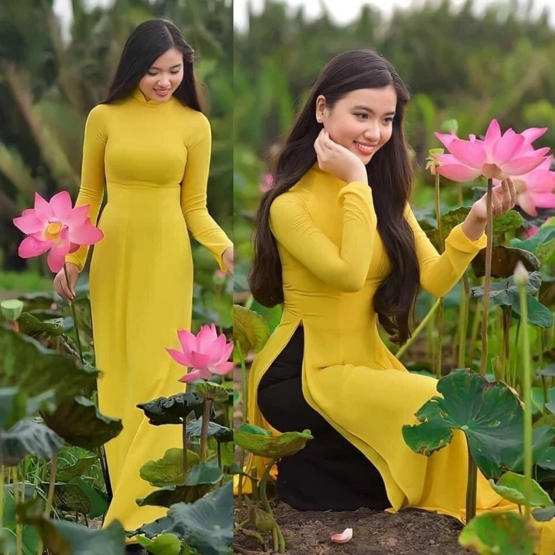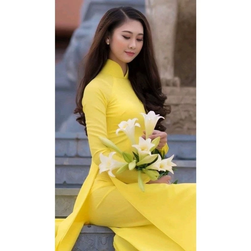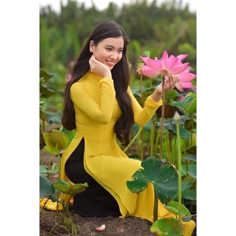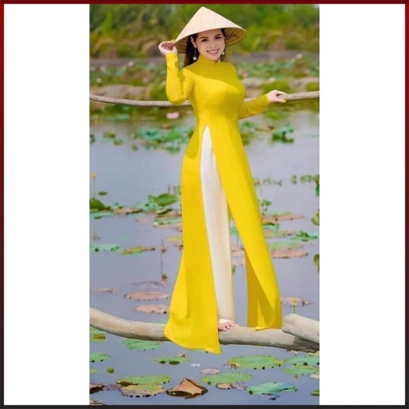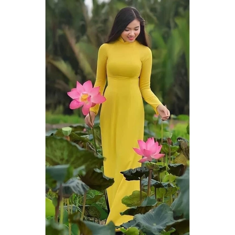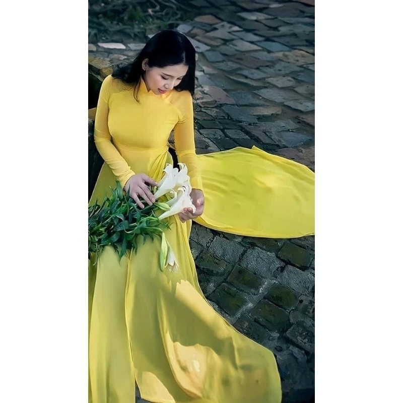 Áo dài truyền thống – Áo dài nhà tấm màu vàng xinh tươi ADV16